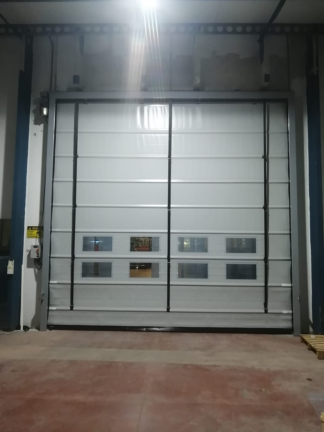 PVC Kapı & Branda Kapılar; Fabrika, depolarda insan veya mal giriş çıkış sirkülasyonunun çok olduğu yerlerde kapının hızlı ve güvenli şekilde açılıp kapanmasını sağlar. PVC kapılar sevkiyatlarda ve geçiş noktalarında enerjiyi ve zaman kaybını büyük ölçüde azaltırken aynı zamanda ısı kaybının da önüne geçer. Enerji kesintilerinde manuel kullanım imkanı da sunulur.